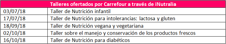 A través de la empresa iNutralia, empresa referente en el sector de alimentación gracias a la cual voy a ser una de las afortunadas nutricionistas que lleven a cabo dicho proyecto, Carrefour ofrecerá tanto talleres gratuitos en el propio hipermercado como la instalación de un stand en la zona de alimentación para resolver todas las dudas que se planteen los usuarios acerca de su propia compra.